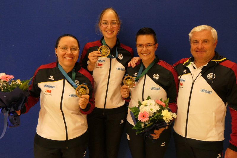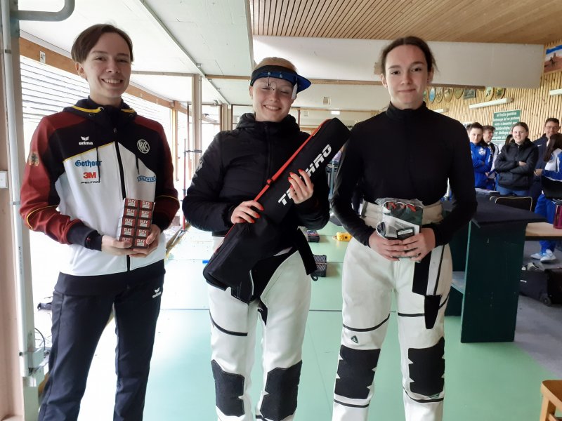Zuvor holten sich Larissa Weindorf, Nele Stark und Anna Janssen Bronze im KK-Dreistellung Juniorinnen Team Finale.